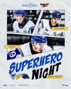 This Saturday’s Superhero Game is a rare Saturday afternoon event with a puck drop at 4 pm. Plus, you can save money and help out a great cause at the same time when you purchase tickets!