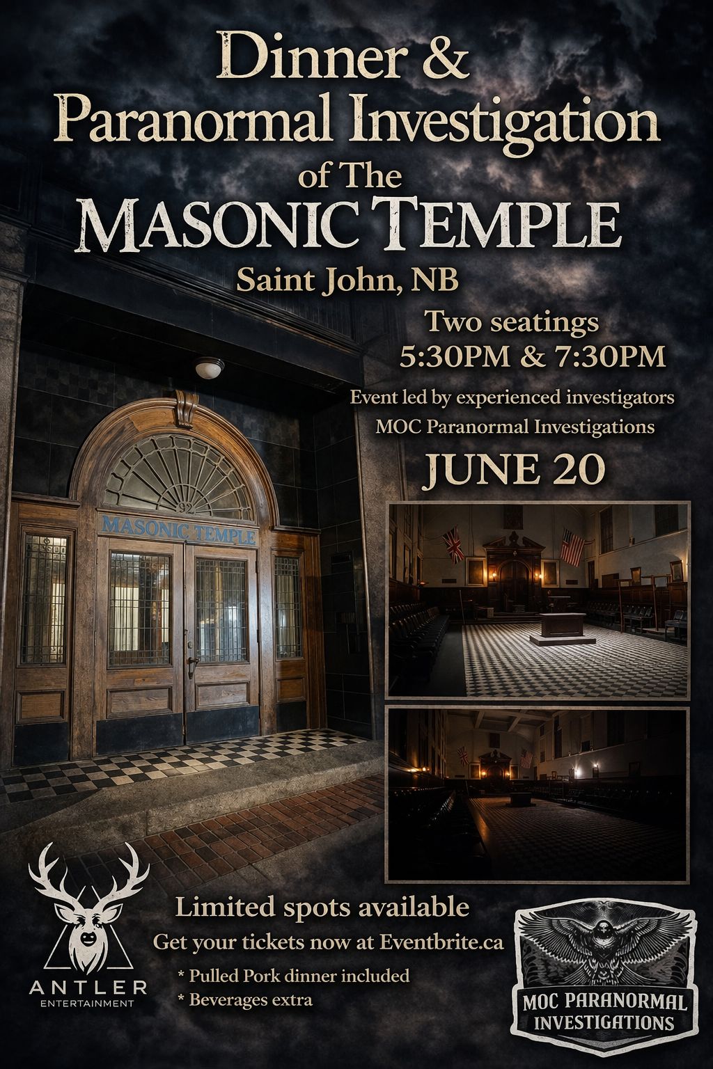 Saint John Masonic Temple 92 Germain, Saint John, New Brunswick, CanadaThis is your chance to see & investigate the Grand Lodge of New Brunswick including parts of the temple, typically only accesses by members The Paranormal Investigation of The Saint John Masonic Temple Join us for a spooky evening at The Grand Lodge of New Brunswick on June 20, 2026. 2 Seatings available. Please come 5-10 minutes prior […]