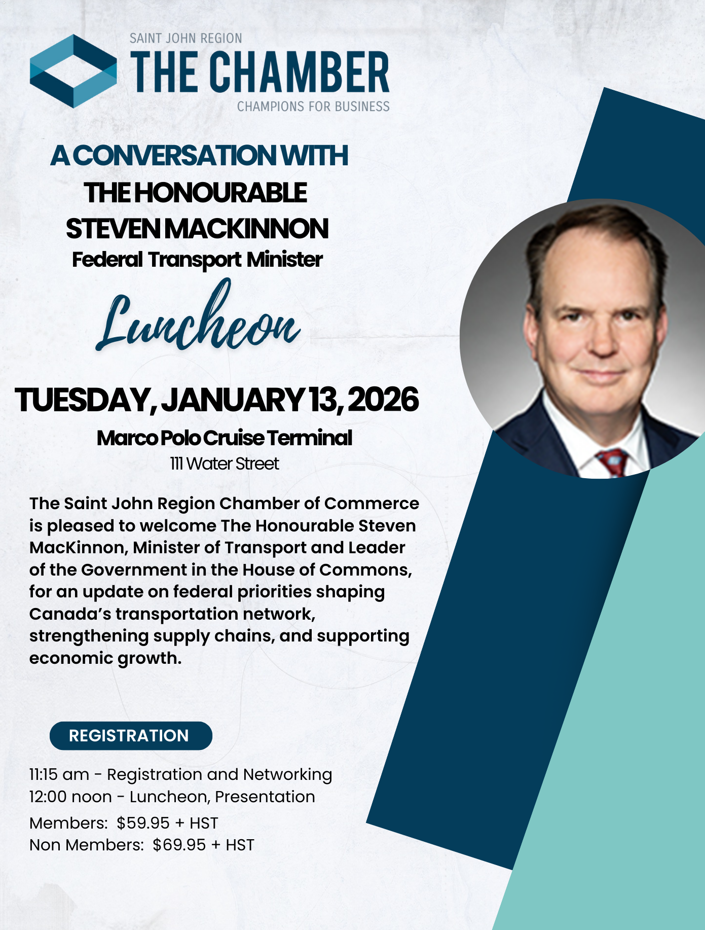 Upcoming Chamber Luncheon - January 13, 2026 Join the Saint John Region Chamber of Commerce for a luncheon featuring the Honourable Steven MacKinnon, Minister of Transportation and Leader of the Government in the House of Commons. Minister MacKinnon will provide an update on federal priorities shaping Canada’s transportation network, including efforts to strengthen supply chains […]