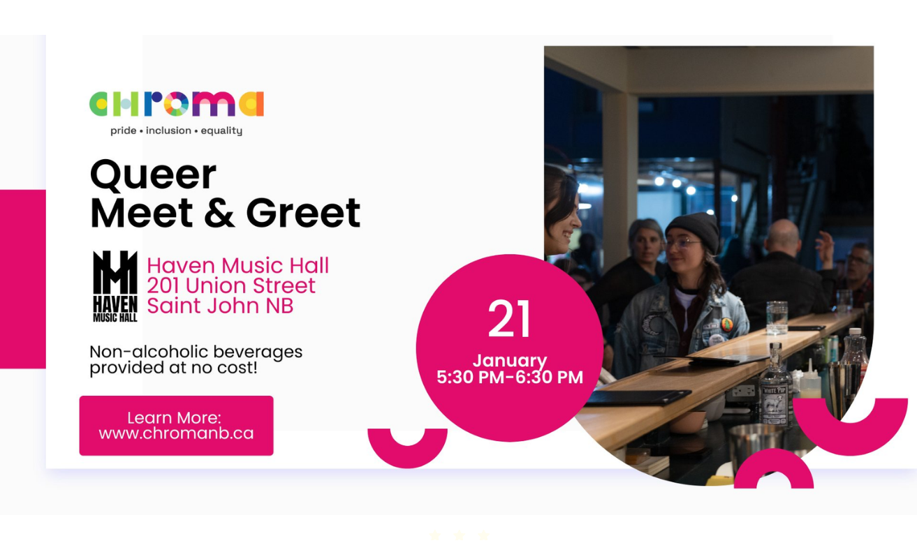 Join us for Chroma’s monthly Queer Meet & Greet at Haven Music Hall! It’s a wonderful chance to connect with fellow community members and make new friends. Enjoy complimentary non-alcoholic beverages while you mingle. We look forward to seeing you there! Accessibility: Haven Music Hall is a small, street-level music venue without fixed seating. The […] |
